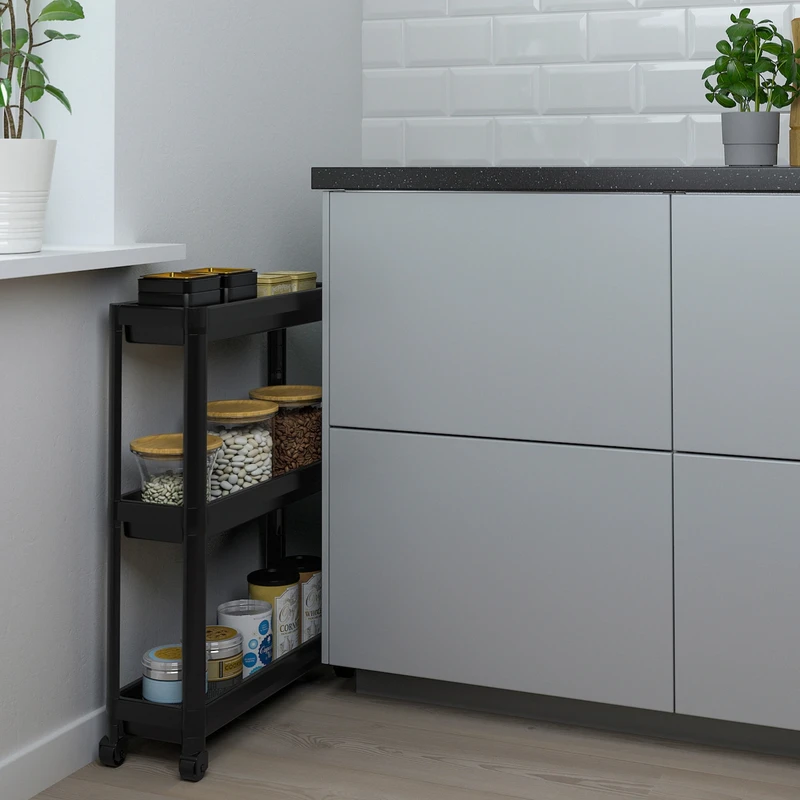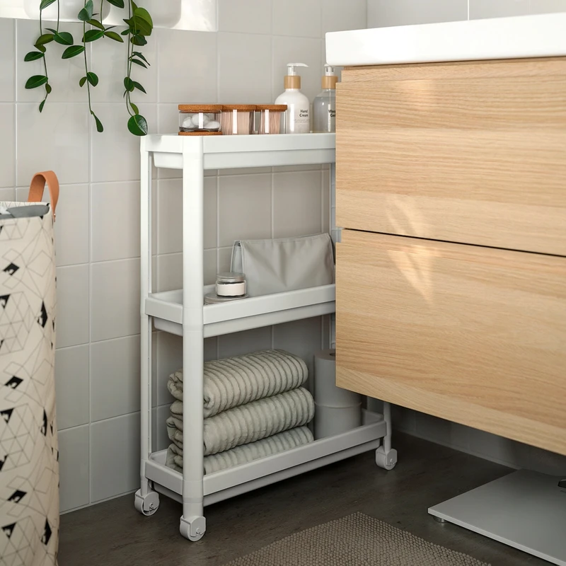 ساختار مستحکم و چهار چرخ چرخ باعث میشود تا بتوانید چرخ دستی را به راحتی جابجا کنید و از آن در هر کجا که دوست دارید استفاده کنید. به دلیل اندازه کوچکش حتی در فضاهای تنگ جا می شود. همه چیز در جای خود باقی می ماند، از شامپو و نرم کننده گرفته تا اسفنج، زیرا قفسه دارای لبه های بلند از هر طرف است.