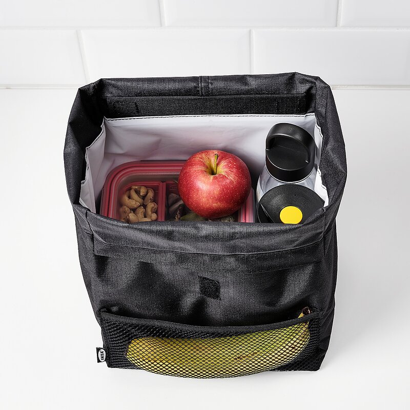 این کیف ناهار ایکیا مدل FRAMTUNG یک کیف کوچک مشکی مناسب اوقاتی که می خواهید وعده های غذایی را به همراه خود داشته باشید خواهد بود. طراحی شکیل و شیکی دارد با ویژگی های هوشمند ، مانند داخل عایق برای گرم نگه داشتن غذا برای مدت طولانی تر، مواد مقاوم در برابر آب و یک جیب برای کارد و چنگال و سایر اقلام کوچک که اینها از نکات مهم و قابل توجه برای این کیف کوچک دوست داشتنی هستند.