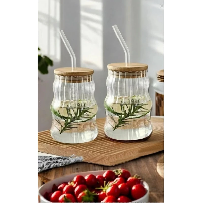شیشههای شیشهای ABHYAM با طراحی خطی ۵۵۰ میلیلیتری و دربهای مخصوص آبمیوه، شیر، آبجو، نوشابه با لیوان مسافرتی قابل استفاده مجدد، ماگ مخصوص چای سبز و قهوه با درب دربسته - لیوان مخصوص چای سبز و قهوه با نی