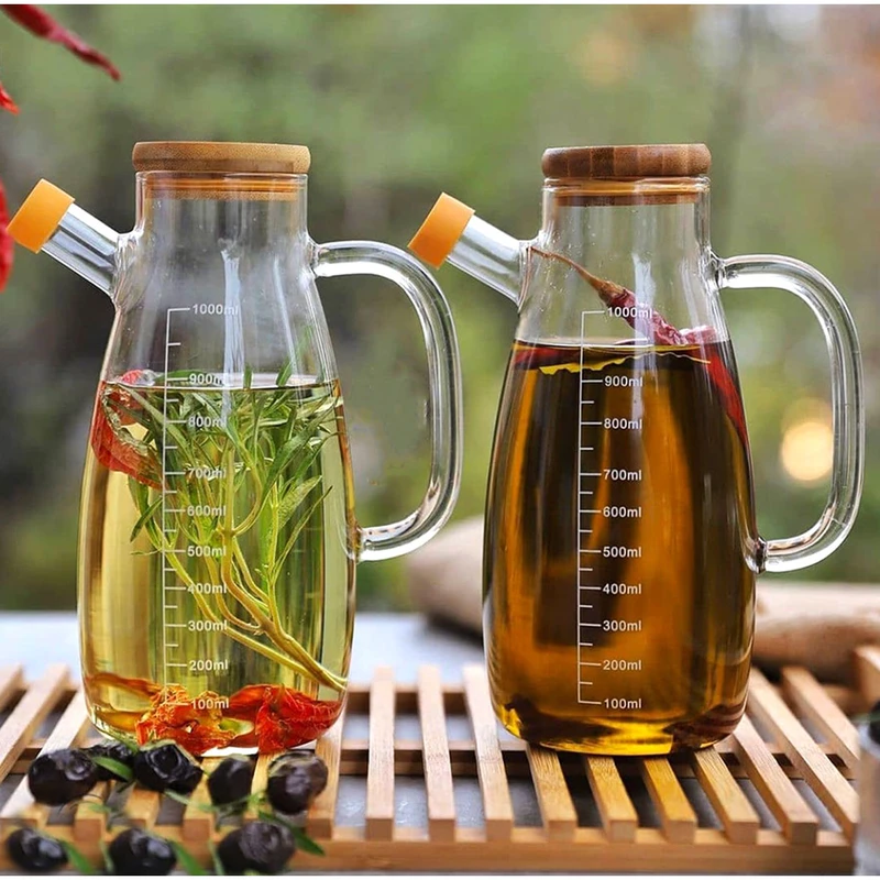 ظرف روغن یک وسیله ضروری در اشپزخانه میباشد چون همه روغنها در فروشگاهها در بسته بندی پلاستیکی و غیر استاندارد نگهداری میشود و خیلی بهتر است بعد از خریداری در ظرف شیشه ای ومخصوص خودس نگهداری واستفاده شود این ظرف روغن تا سالهای سال بشما وسلامتی شما خدمت میکند وپس از هر بار خالی شدن با شستن ان حسابی تمیز و اماده برای دوباره پرشدن و استفاده میشود حجم این ظرف 1000 میلی لیتر برابر با یک لیتر میباشد که در این نوع کالا سایز بزرگ محسوب میشود جنس ظرف پیرکس درجه یک میباشد درب سیلیکونی در قسمت روغن ریز دارد درب خود روغن ریز از جنس بامبو است که با شستن هیچگونه مشکلی ندارد ظرف مدرج میباشد و درب ان کاملا کیپ میشود که از هرگونه الودگی و ورود میکروب نیز جلوگیری میکند قابل شستشو با ماشین ظرفشویی میباشد.