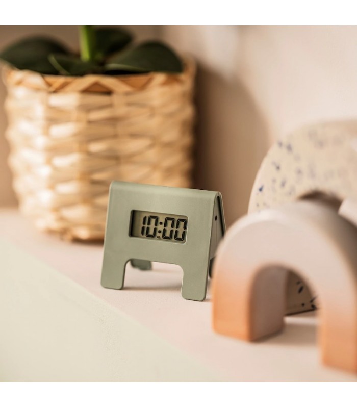 عت رومیزی آلارم دار ایکیا مدل KUPONGKUPONG یک ساعت زنگ دار کوچک و جمع و جور با رنگ سبز خاکستری است.آلارم این ساعت مینیمال ایکیا در ۴ مرحله و در مدت زمان ۲ دقیقه به تدریج افزایش پیدا می کند تا شما را از خواب بیدار کند.با استفاده از 2 دکمه پشت ساعت زنگ دار می توانید به راحتی زمان زنگ ساعت را تنظیم کنید.دو عدد باتری نیم قلمی برای روشن کردن آن نیاز دارید که باید به صورت جداگانه تهیه کنید.