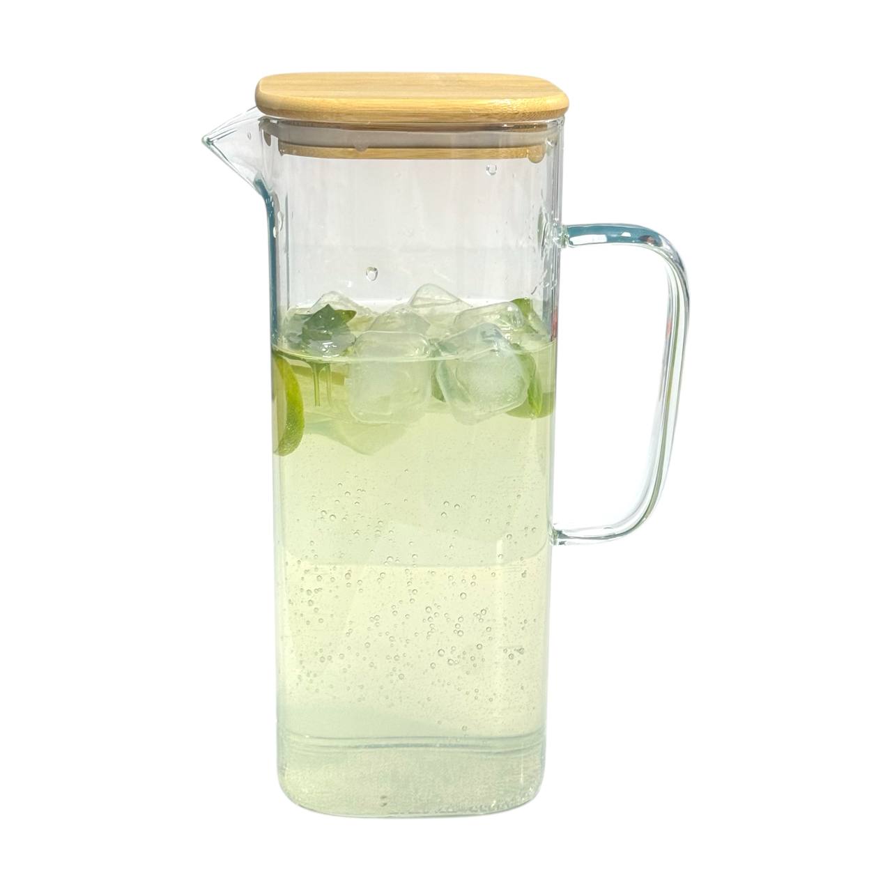 این پارچ آب شیشه ای دارای ظرفیت ۲ تا ۲.۵ لیتر ساخته شده از شیشه بوروسیلیکات بالا، قابل شستشو در ماشین ظرفشویی و مقاوم در برابر حرارت است. شیشه بوروسیلیکات بالا در برابر خاموش شدن و گرم شدن مقاوم است و در صورت خاموش شدن و حرارت دادن نمی ترکد.فاقد هر گونه مواد شیمیایی است.درب این پارچ از جنس بامبو بسیار با کیفیت و دارای واشر میباشد
