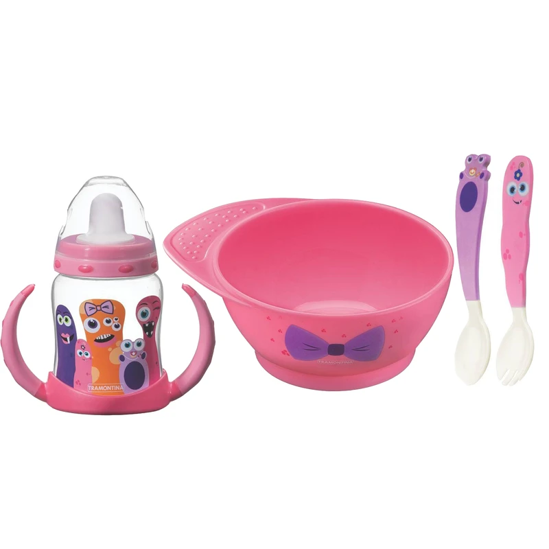 ظرف غذاي كودك 4 تيكه ترامونتينا از سري محصولات مخصوص كودك شركت ترامونتينا ساخت برزيل مي باشد كه كاملا ضد حساسيت و با مقاومت دمايي بالا مي باشد اين ست متشكل از يك بشقاب كه به سه بخش مختلف تقسيم شده ، يك عدد قاشق و يك عدد چنگال و يك عدد ليوان دسته دار مي باشد همچنين اين محصول فاقد ماده مضر BPA مي باشد كه با اطمينان مي توانيد غذاي گرم كودك خود را درون آن ريخته و به فرزند دلبندتان بدهيد.