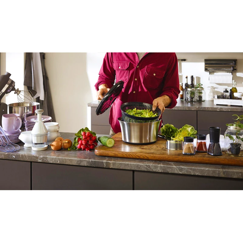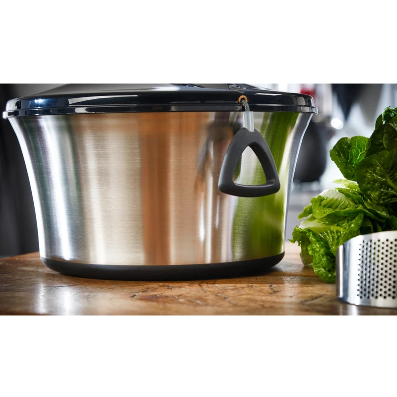 سبزی خشک کن لایف هایت مدل 32410 محصول با سه کار کرد است. خشک کردن سبزی و سالاد در این وسیله با روش کشیدن طناب صورت می گیرد که باعث خشک شدن و آبگیری کامل از محصول داخل سبد می شود. سبد داخلی بیرون آمده و میتواند به عنوان آبکش برای موارد مختلف استفاده شود. بدنه اصلی این محصول نیز امکان استفاده به عنوان ظرف سالاد را دارد. شما می توانید کلیه قسمتهای این محصول را جهت شستوشو از هم جدا کرده و با خیال آسوده با ماشین ظرفشویی بشویید. بدنه این محصول از جنس استیل ضد زنگ و ضد لک می باشد. دارای محل تخلیه آب سبزیجات از روی درب .